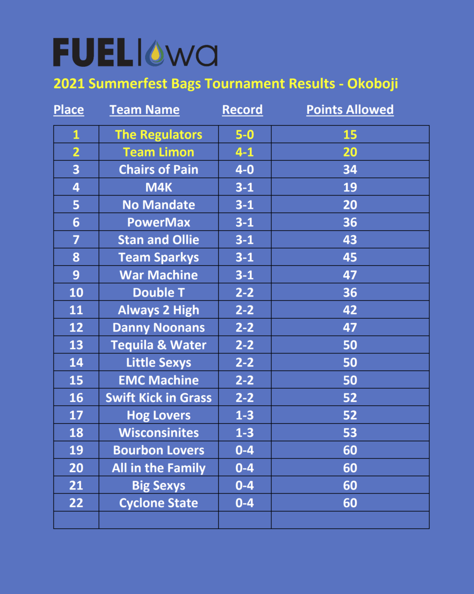 Congratulations to our 2021 Summerfest Bags Tournament winners, and thank you to all who participated!