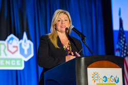 Event Host Dawn Carlson, PMCI president and CEO, addresses attendees with an overview of the opening general session line-up. |
